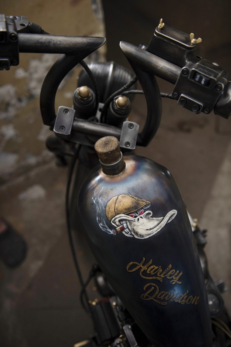 Gut zehn Tage stand die Harley, fertig auf der Hebebühne, ehe Hafi die Inspiration fand – alles nochmals zerlegen. Steam Punk Style – das war sein Plan.